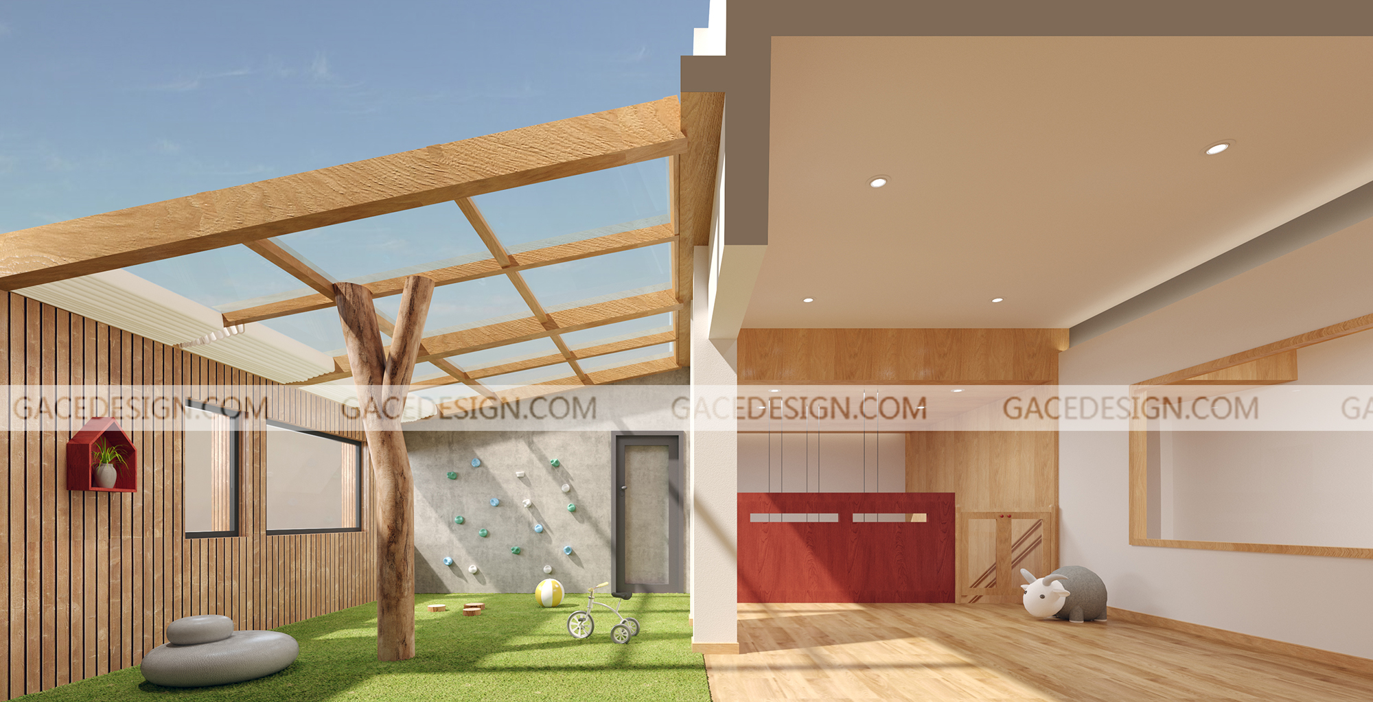 設(shè)計(jì)思路:本次項(xiàng)目主要強(qiáng)調(diào)的是多層建筑穿透的院落空間,采用細(xì)膩?zhàn)匀徊牧洗蛟斓妮p盈體量,在各層設(shè)置了一個(gè)中央部落,將孩子們齊聚一堂。大面積的木制飾面營造出溫暖的室內(nèi)氛圍,自然、溫暖的元素融合在一起形成了一個(gè)充滿活力與溫暖的室內(nèi)空間。我們將小陽臺納入室內(nèi)規(guī)劃出內(nèi)庭院,內(nèi)部的走廊和公共空間因?yàn)閮?nèi)庭院的存在而變得光明。