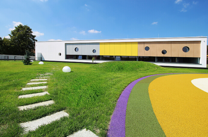 瑞士斯塔比奧在一片美麗的綠地上,佇立著斯塔比奧幼兒園,通過道路和橫墻將新樓和景觀連接起來,去為項目地......
