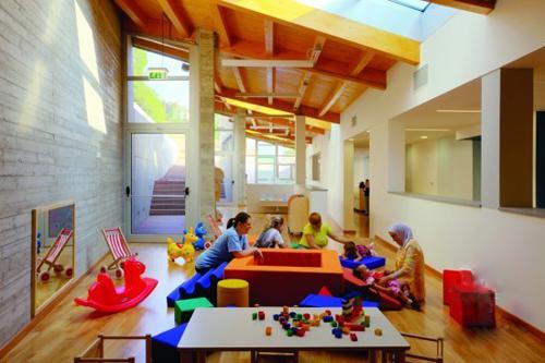 ccd studio設(shè)計的位于意大利維尼奧拉的Barbapapà幼兒園,是一項舉辦的設(shè)計競賽。該幼兒園位于城市開發(fā)區(qū)的邊緣地帶的山坡之上,離城市歷史中心并不太遠(yuǎn),它可以容納60個兒童,由4間教室組成。工程的目標(biāo)是達(dá)到可持續(xù)性的要求,這點從建筑的各個方面都可以體現(xiàn)出來,并且建筑本身也將這種可持續(xù)性的價值傳遞給了孩子們。