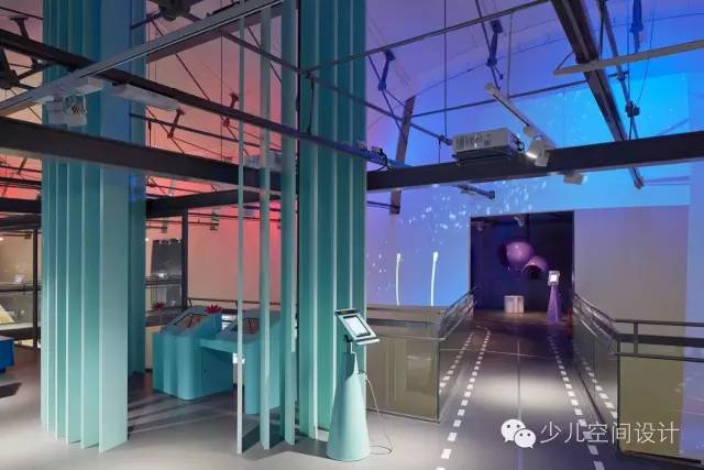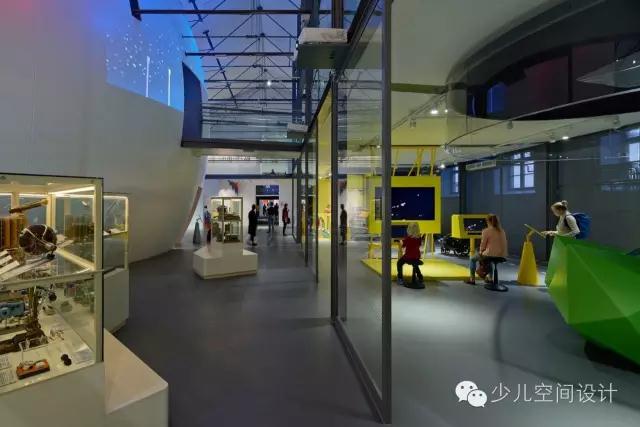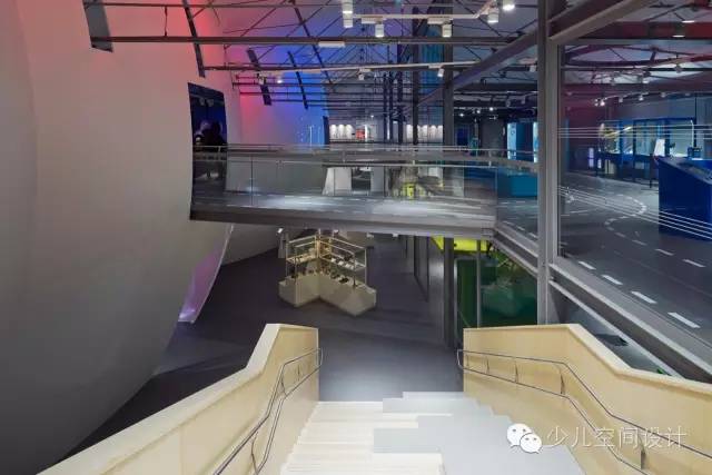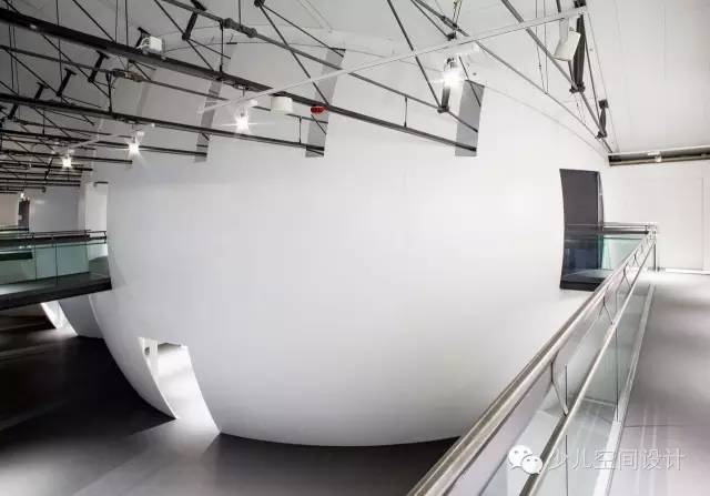 在大廳里,兩個(gè)宏大體量較天花板又上升了10米,一個(gè)體量繃緊而堅(jiān)硬,另一個(gè)體量柔軟而具有波動(dòng)性。它們由橋梁相連,人們通過橋梁來回走動(dòng)。游客會(huì)產(chǎn)生“哇”的驚嘆感,并被引入充滿誘惑和想象力的迷人世界,它激發(fā)人們的欲望和好奇心來參與學(xué)習(xí)、探索和創(chuàng)造的過程。