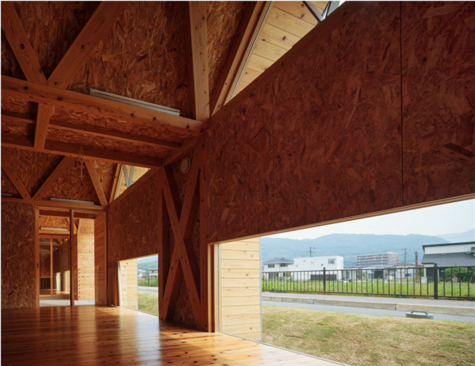 屋頂結(jié)構(gòu)采用折疊板設(shè)計,無柱空間是通過運用木桁架梁屋頂結(jié)構(gòu)實現(xiàn)的,形狀像一塊折疊板。所有支撐屋頂結(jié)構(gòu)的承重墻都被布置在建筑外圍?,F(xiàn)在這座建筑分成了兩個保育室、衛(wèi)生間等,但將來也可以轉(zhuǎn)換為一個大房間。