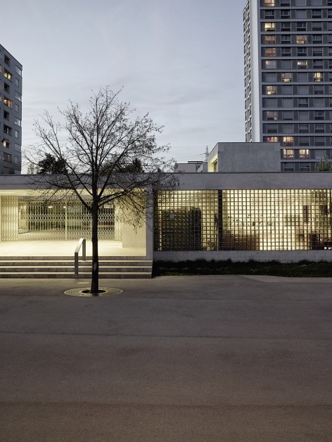 位于瑞士蘇黎世Hirzenbach區(qū)域的城市結(jié)構(gòu)如同花環(huán)般層次分明,外圍的公寓樓高低起伏,環(huán)繞著中間開闊、平坦而低矮的學(xué)校建筑。而由Basler & Hofmann事務(wù)所所新建的建筑意在加強現(xiàn)有城市肌理的邏輯關(guān)系,在學(xué)校的北面建起了一座僅僅有一層高的幼兒園,而南邊的半下沉體育館則充分考慮了其作為開放性公共空間的通透性。