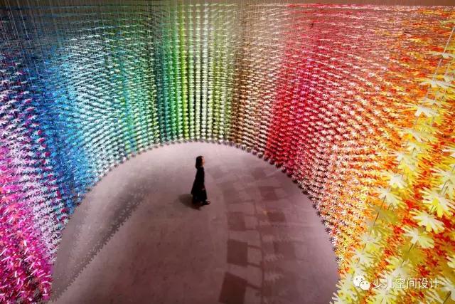 設(shè)計(jì)師采用了螺旋的形式,將空間變成了一個(gè)具有花卉圖案的,充滿了活力的,閃閃發(fā)光的五彩世界。游客可以站在其中,周圍的五顏六色包圍著他們。他使用了25,200個(gè)花卉圖案用3維網(wǎng)格形式排列,精工株式會(huì)社讓他們的客人真正的沉浸在了這個(gè)展覽中。