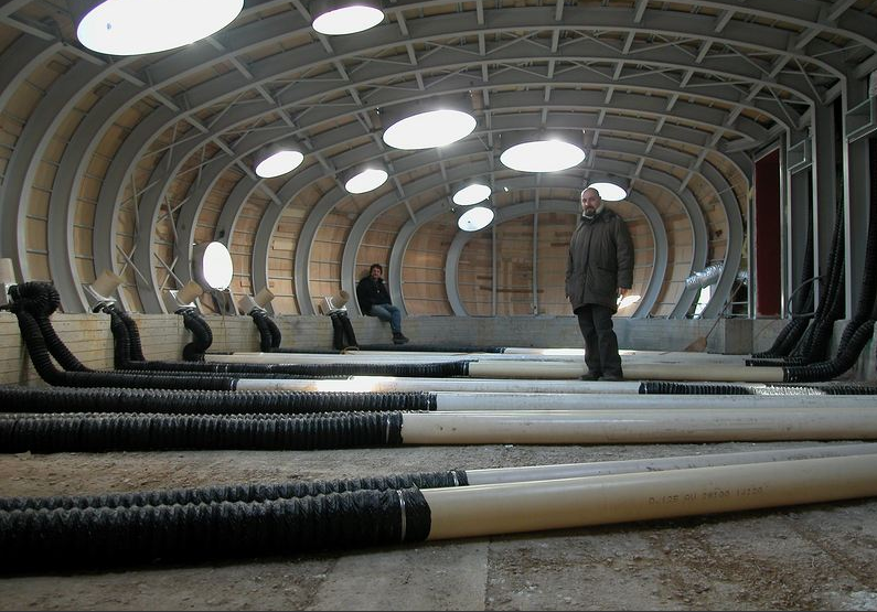 在另一邊,我們能看到有著其他特殊用途的房間:宿舍,美術(shù)室及活動(dòng)室。這是一個(gè)富有參與性的空間。在建筑內(nèi)部,你會(huì)感覺(jué)置身于一個(gè)地板結(jié)冰的洞穴里。而建筑外部的設(shè)計(jì)看起來(lái)就像是一個(gè)降落在花園里的宇宙飛船。光線從18個(gè)舷窗透進(jìn)來(lái),這些舷窗分別安裝在墻壁和拱頂?shù)牟煌恢?,而且光線的位置總是隨著時(shí)間和季節(jié)的變化而變化。