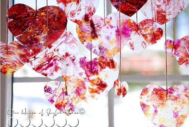 直接用透明膠帶將心形圖案粘貼在窗子上,當(dāng)陽關(guān)透過窗子照進(jìn)教室時(shí),會非常的漂亮。