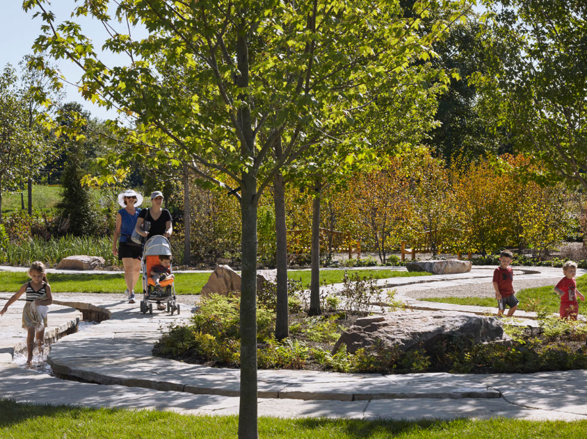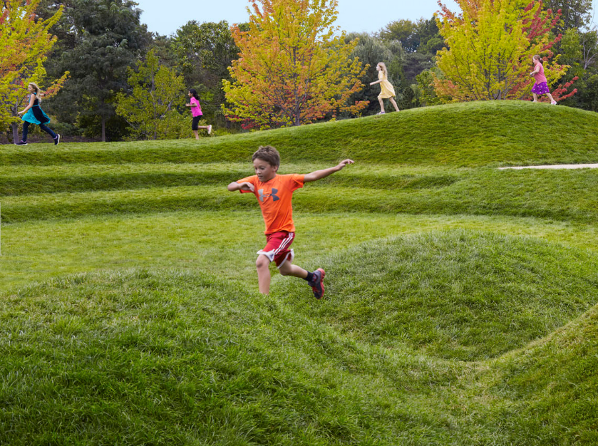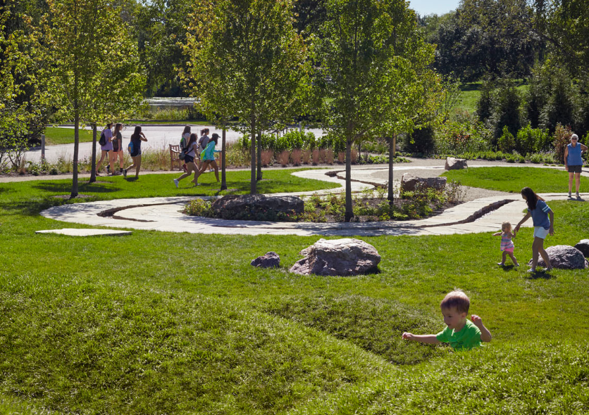 雷根斯坦學(xué)習(xí)園區(qū)是芝加哥植物園新設(shè)的環(huán)境探索中心和自然游樂場。這個占地六英畝的園藝園區(qū)作為科學(xué)園藝中心,為充滿活力的家庭社區(qū)服務(wù),提供與自然環(huán)境的互動體驗,每年游客量超過12.5萬人。該設(shè)計促使家庭和各年齡段兒童參與豐富的戶外體驗,例如以探索為導(dǎo)向的學(xué)習(xí)和游戲,從而更深入了解生態(tài)系統(tǒng)。廣闊的花園提供各種自然體驗和探索活動,游客穿梭在草地、戲水小路、石塊、多樣的林地種植和柳枝隧道中。這個再生工程被設(shè)想為通向自然世界的門戶,一年四季提供探索與創(chuàng)造的機會。