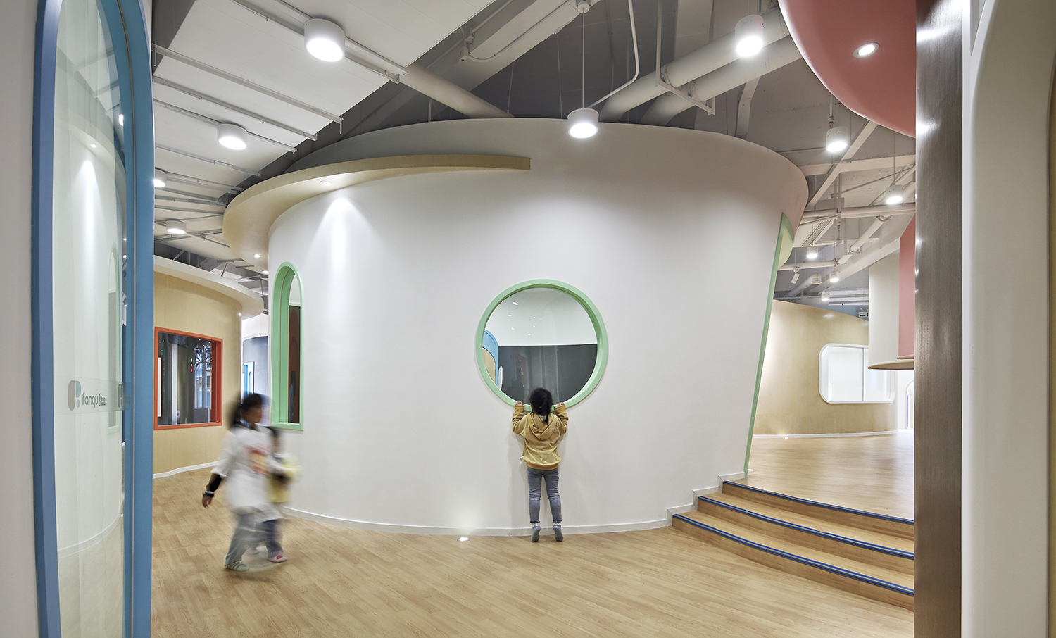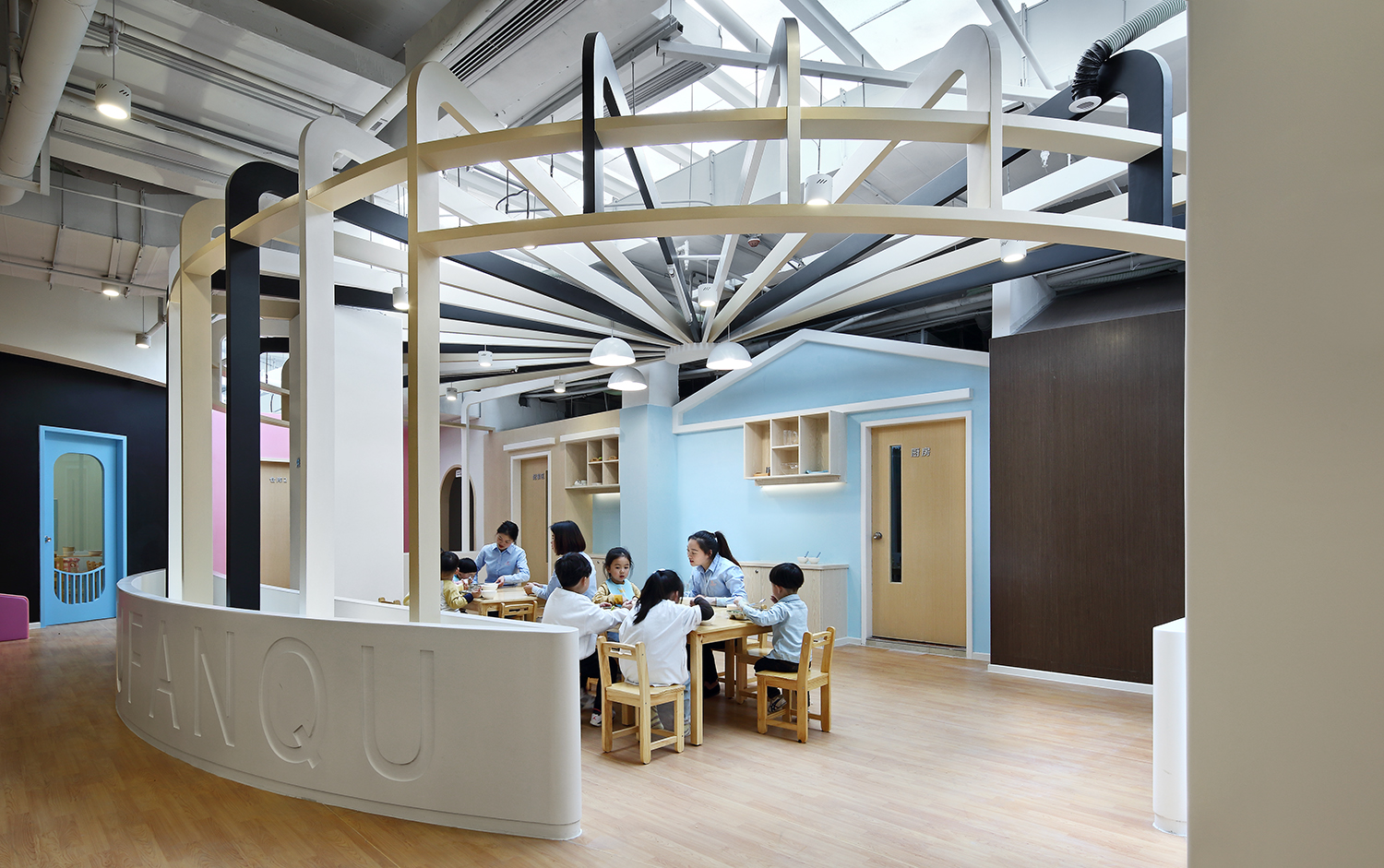 設(shè)計(jì)師將這些單個(gè)場(chǎng)所及其代表性元素,一一落實(shí)到番趣兒童成長(zhǎng)中心后,不僅形成了有趣的分區(qū)和大量多元化的小角落,還驚喜地產(chǎn)生了很多趣味性的視覺(jué)呈現(xiàn)。室內(nèi)的承重柱也不知不覺(jué)被設(shè)計(jì)師巧妙隱藏了起來(lái)。