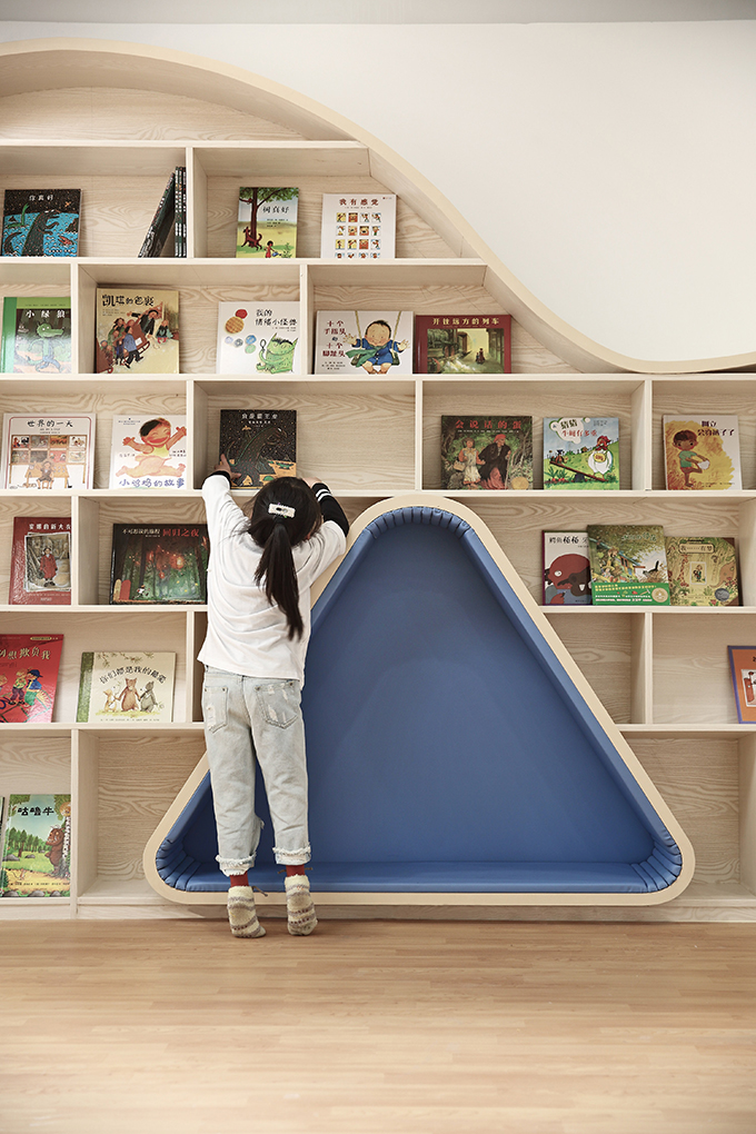 設(shè)計(jì)師將室內(nèi)采光最充足的區(qū)域留給餐廳、繪本區(qū)等公共區(qū)域,同時(shí)打造開(kāi)放感,以此盡量延展陽(yáng)光在成長(zhǎng)中心的照射范圍。當(dāng)陽(yáng)光進(jìn)來(lái),仿佛天燈將整座城市點(diǎn)亮。孩子們能夠在陽(yáng)光下活動(dòng),吃飯、讀書(shū)、玩樂(lè),隨著時(shí)間的變化觀察光影,感受陰晴雨雪和四季變化。